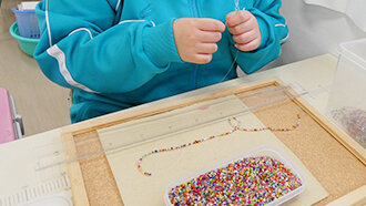 染織デザインコースの作業の特徴は、機織り、染め、ビーズアクセサリー作りを通して、繰り返しや継続して1つのものを作り上げていくことです。