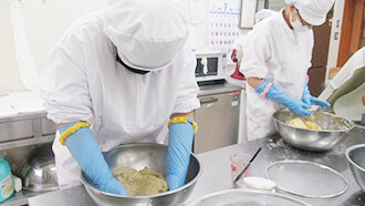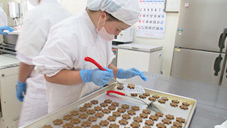 食品製造コースの主な仕事内容は、毎日の昼食準備、クッキー作り、年4回の調理実習です。