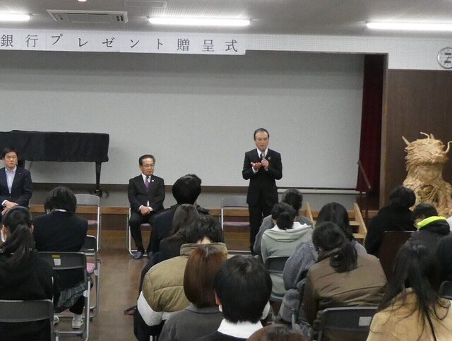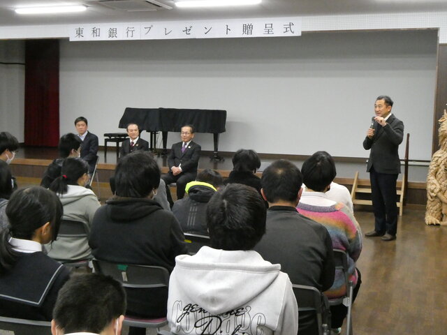 大出校長先生から、挨拶と東和銀行様へのお礼がありました。 -