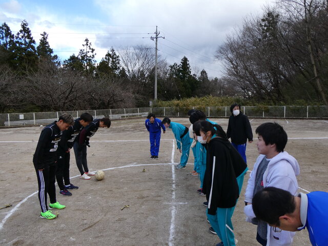 3チームに分かれて、選手と生徒が協力して、パスリレーゲームも行いました。かなり白熱した戦いでした。 -