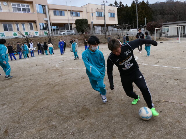 一般社団法人PiiS FLYから現在は、ツエーゲン金沢に在籍している畑尾選手、ザスパクサツ群馬に在籍している北川選手と小野関選手が来校されて、サッカーの交流会を行いました。