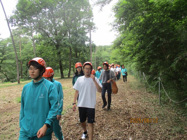 電力中央研究所様に整備していただいた階段を使って高台へ避難開始です。 -