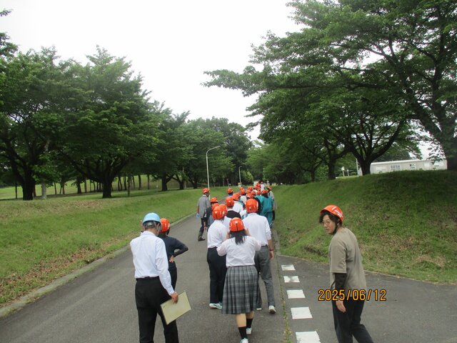 豪雨により、粕川の氾濫警報が発令されたことを想定し、電力中央研究所様の避難場所まで避難する訓練を行いました。
