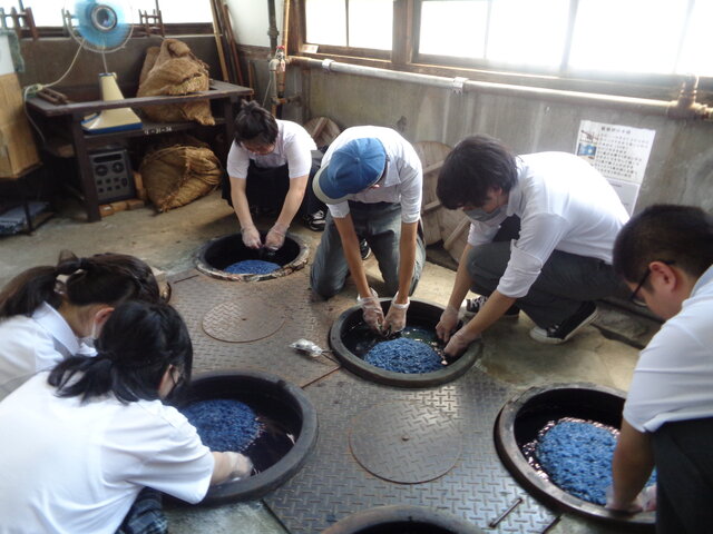 織物参考館紫に行き、藍染め体験を行いました。 -