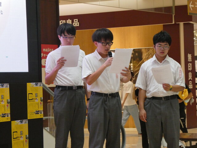 若葉高等学園では3人の生徒が作業製品の販売、美術作品展示、学校紹介などPR活動を行いました。