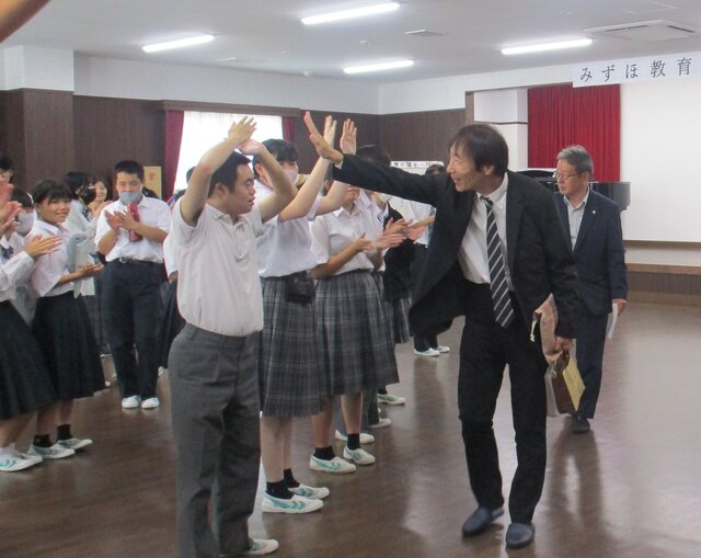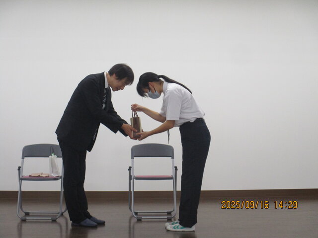 9月16日(火)みずほ教育福祉財団常務理事 松永様が来校され、若葉高等学園への教育設備助成贈呈式が開催されました。毎年、たくさんの教育教材、教具、備品を寄贈していただき大変ありがとうございます。いただいた備品等を大切に使わせていただき有意義な学校生活を送っていきたいと思います。