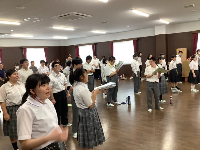 音楽の授業で練習している「校歌」と「365日の紙飛行機」を大きな声で歌いました。 -