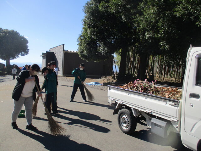 本校理事である観昌寺様の落ち葉清掃を年に1回行っています。 -