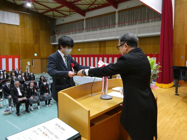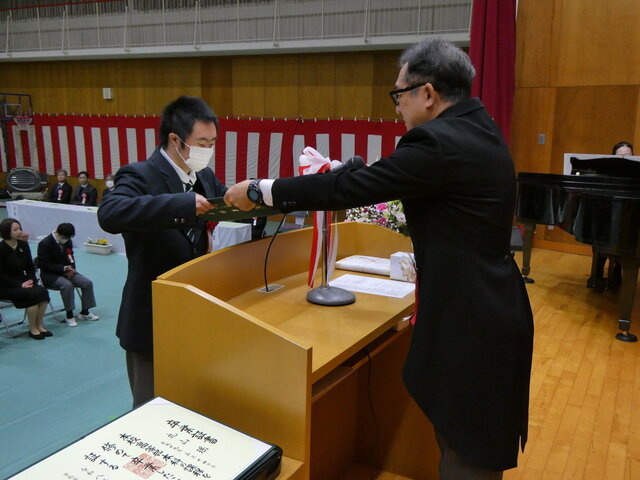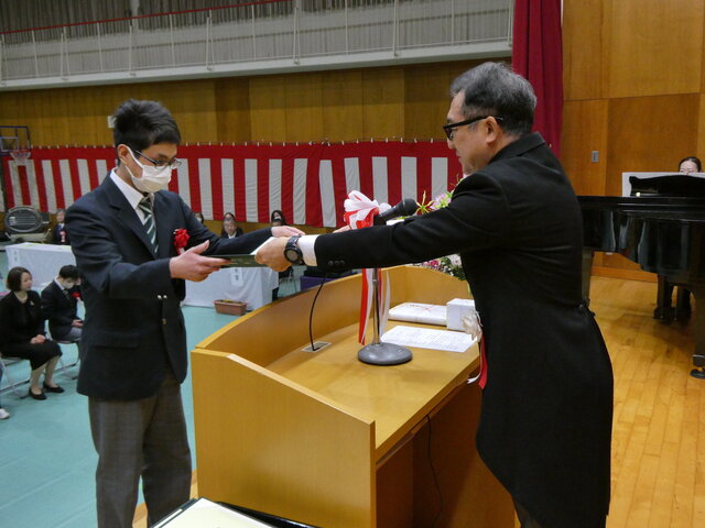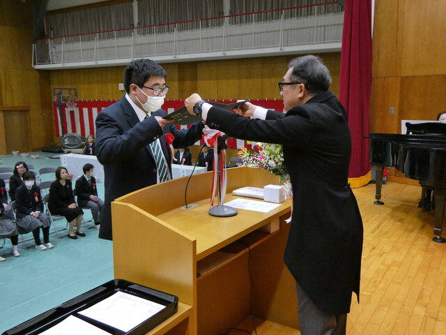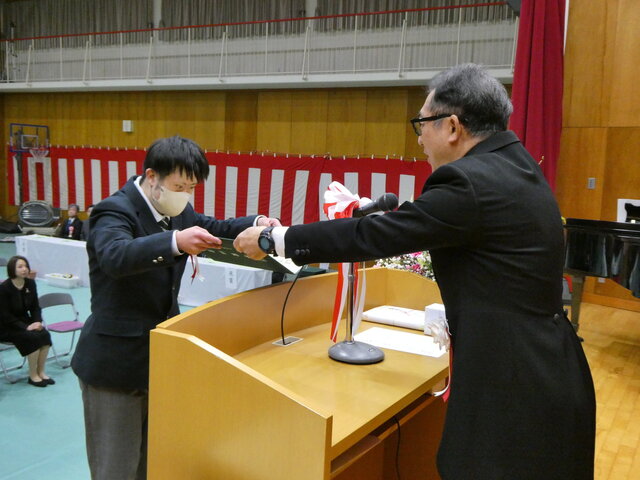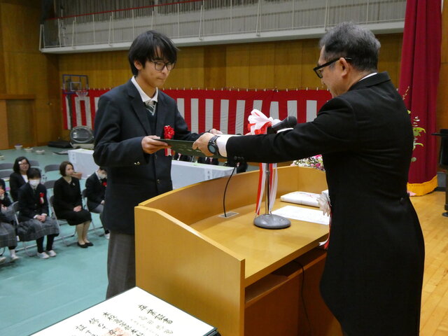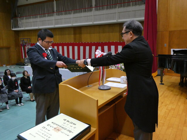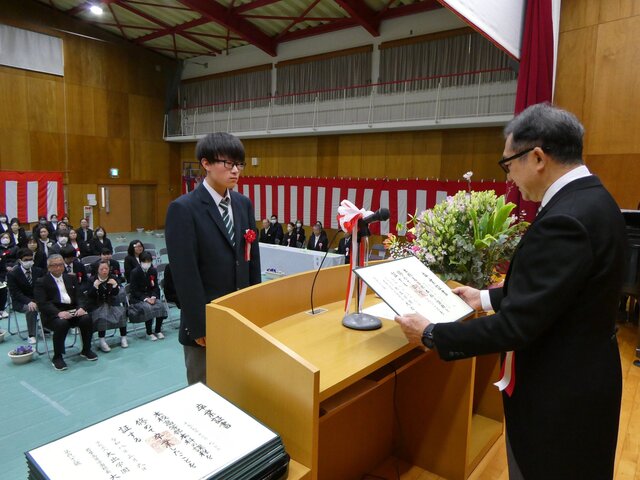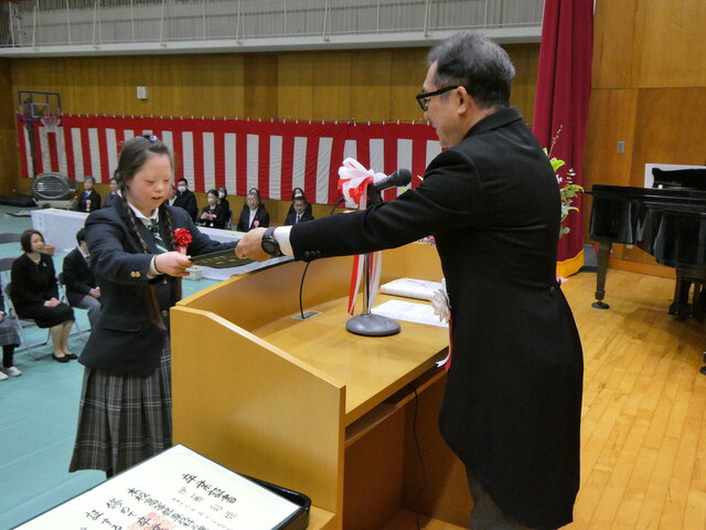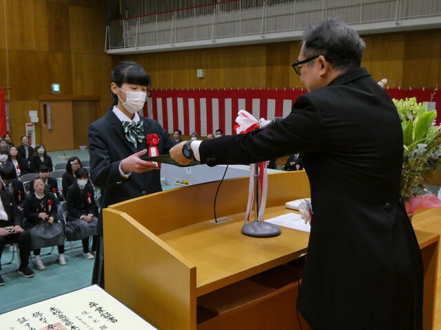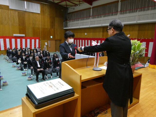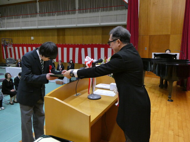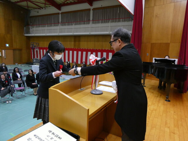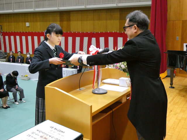 一人ひとりが将来への抱負、保護者、先生方に感謝の気持ち込めたメッセージを読み上げたあと、校長より卒業証書が手渡されました。
