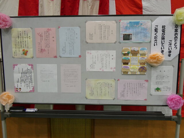 卒業生にたくさんの方々から心温まる祝福のメッセージをいただきました。