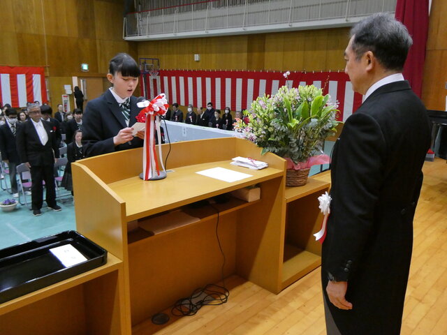 卒業生からも在校生、保護者、教職員、地域の方々に感謝の気持ちを込めて答辞が送られました。 -