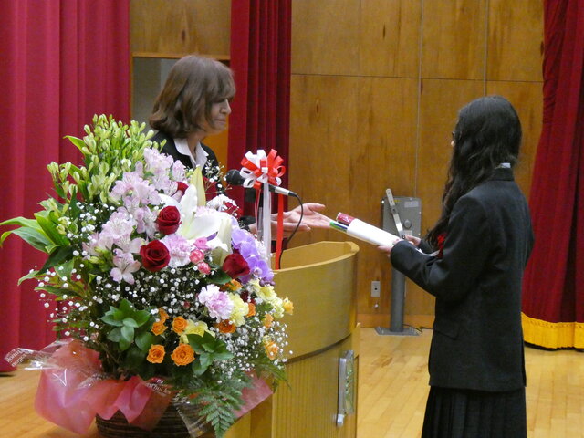 学校長からの式辞とご来賓の皆様から心温まるお祝いのメッセージをいただきました。 -